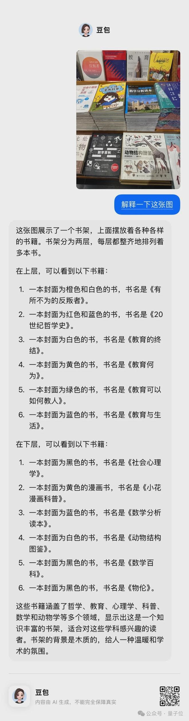 除了给图片添加中文,豆包最近还更新了一些其他和图片相关的功能,比如本月初公布的图片理解功能。