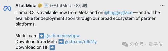 一边是Meta没预告就发布了Llama 3.3,70B版本就能实现以前405B的性能。