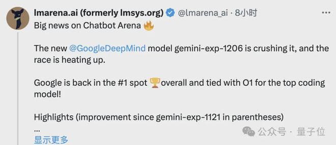 参考链接:[1]https://x.com/AIatMeta/status/1865079067390956006[2]https://x.com/Ahmad_Al_Dahle/status/1865071436630778109[3]https://x.com/lmarena_ai/status/1865080944455225547