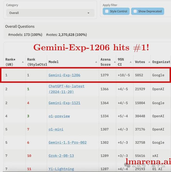 现在的最新版本,又让Gemini重新回到了榜单上的王座。