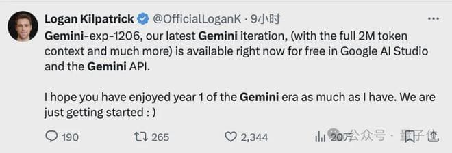此外,谷歌AI Studio产品负责人(原OpenAI开发者社区主管)Logan介绍,Gemini 1206拥有2百万token的上下文窗口,目前可通过谷歌AI Studio和Gemini API免费使用。