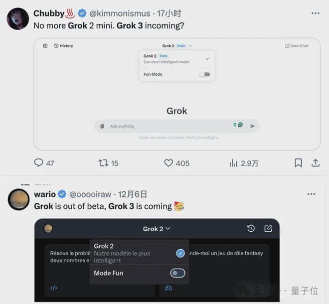 有网友发现,正在测试的Grok 2 mini消失了,认为这是要发Grok 3的征兆。
