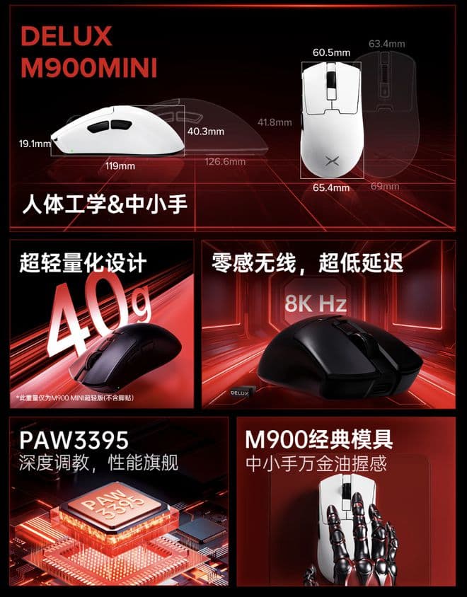 多彩 DELUX 推出 M900 mini Pro 无线鼠标:PAW3395,139 元起