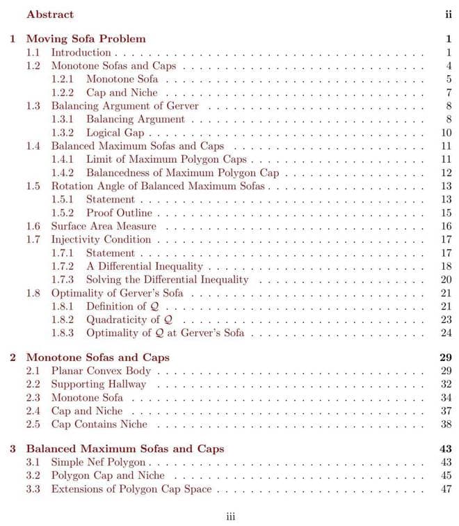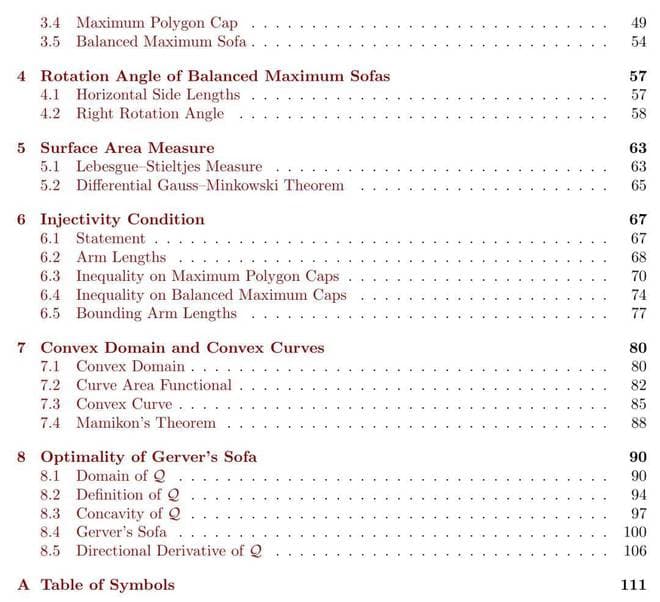 不过,Jineon Baek 的证明论文足足有 119 页,题目为《Optimality of Gerver’s Sofa》。相关专家验证证明的正确性还需要一些时间。