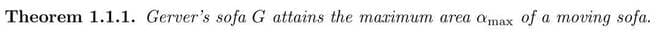 Gerver 推测他的解决方案是最优的,但他无法证明他的沙发是唯一一个(并且是最大面积的)满足这个强条件的沙发。