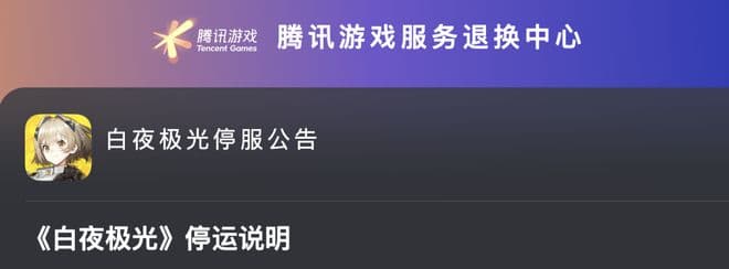 瞅瞅腾讯去年开服的二游《 白夜极光 》,前几天刚发的停服公告还热乎着呢。