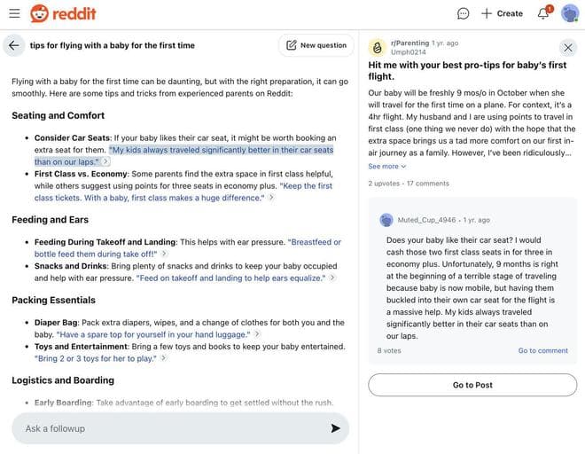 根据科技媒体 The Verge 测试,Reddit Answers 在提供概览和快速导向方面表现出色,点击建议搜索后,能迅速生成带超链接的列表和建议,点击链接即可查看信息来源。