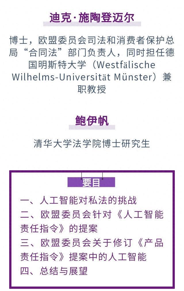 欧洲私法正在经历适应数字化挑战的三个阶段,其中人工智能的自主性和不透明性尤为关键。《人工智能责任指令》和《产品责任指令》的草案均致力于通过调整责任法和产品责任法,以应对人工智能带来的挑战。这两项指令通过保障受害者的知情权和简化证据提供程序,增强了对人工智能应用的法律保护。《人工智能责任指令》特别提出了知情权和“可推翻的推定”,减轻了受害者在人工智能相关责任索赔中的举证责任。此外,该指令还涵盖了人工智能系统的操作范围限制以及私人用户的责任问题,旨在保障受害者权益,并促使企业和用户履行其应尽的注意义务。