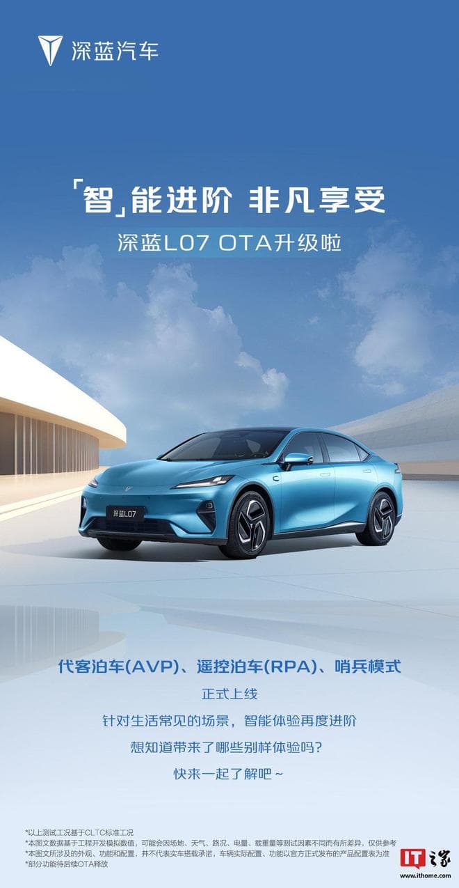 IT之家 12 月 10 日消息,深蓝汽车今日宣布,华为乾崑智驾 ADS SE V1.2 陆续向深蓝 L07 推送,AVP(代客泊车辅助)、RPA(遥控泊车辅助)、哨兵模式上线。