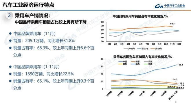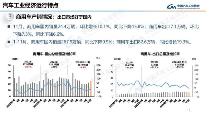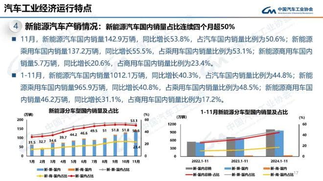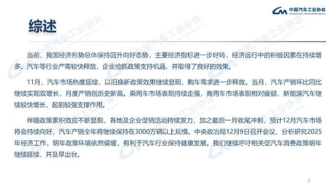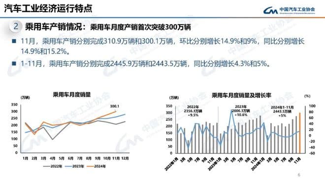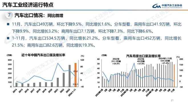 1-11月,汽车产销分别完成2790.3万辆和2794万辆,同比分别增长2.9%和3.7%,汽车产量增速较1-10月扩大1.1个百分点,销量增速扩大1个百分点。
