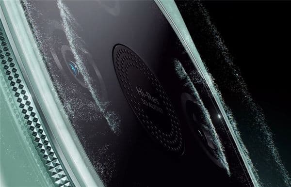 vivo Y300除了手机听筒、底部外,还在后摄模组区域塞进了一颗扬声器,形成三向扬声系统,在后摄扬声器上还有Hi-Res的标识。