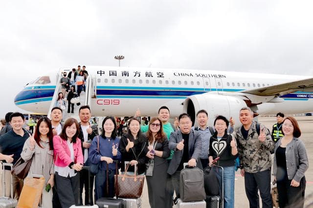 国产大飞机C919首次搭载旅客飞抵海南
