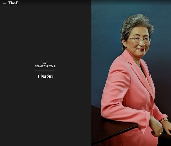 近期,《时代》杂志发文,宣布评选 AMD 首席执行官苏姿丰为「2024年度 CEO」。