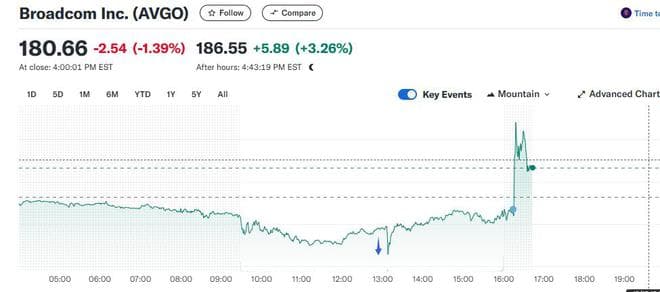 消息传出后,本周四美股午盘,苹果股价涨幅扩大,刷新日高时日内涨0.9%。博通则跌幅迅速扩大,刷新日低时日内跌逾3.9%,后跌幅收窄到2%以内,最终收跌约1.4%,跌落周三反弹超6%所创的11月8日以来收盘高位。盘后博通公布的第四财季EPS盈利高于预期,全财年AI收入增长220%至122亿美元,体现了AI处理器和网络组件的强劲需求,盘后博通股价跳涨,一度涨近5%。