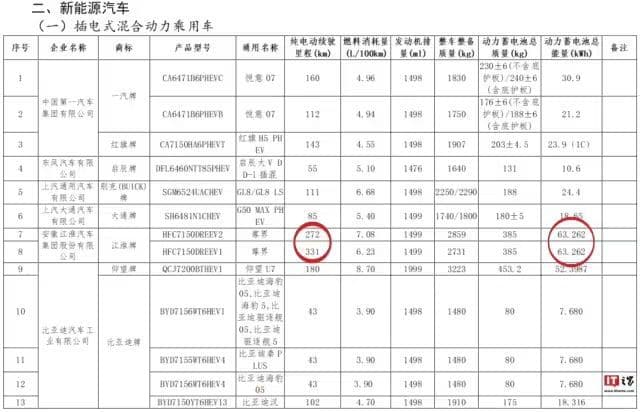 在官方拟发布的车型清单中,显示了该车增程版的电池容量 —— 63.262kWh(度)。