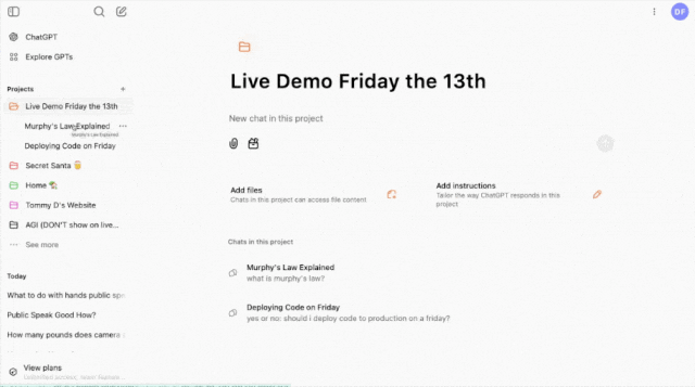 ChatGPT终于也推出Projects功能,却故意露出一个“AGI”的项目