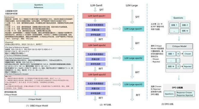 该模型采用两阶段训练策略,先用小模型生成多样化的推理路径,再用大模型进行 RFT 训练和强化学习训练,提升模型推理能力和反思纠错能力。