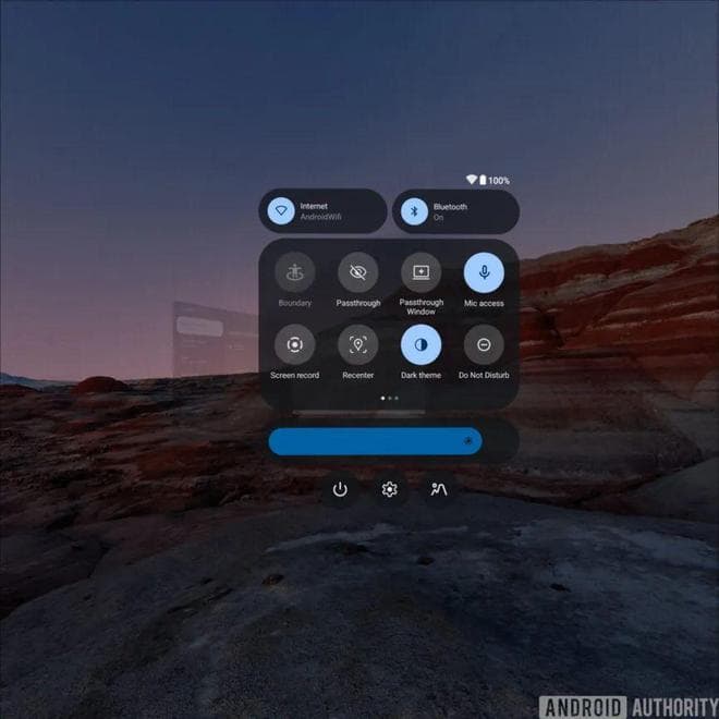 快速设置面板不仅包含互联网、蓝牙等常见 Android 设置的开关,还新增了一些 XR 特定的功能开关,例如边界、透视、透视窗口、重新定位等。
