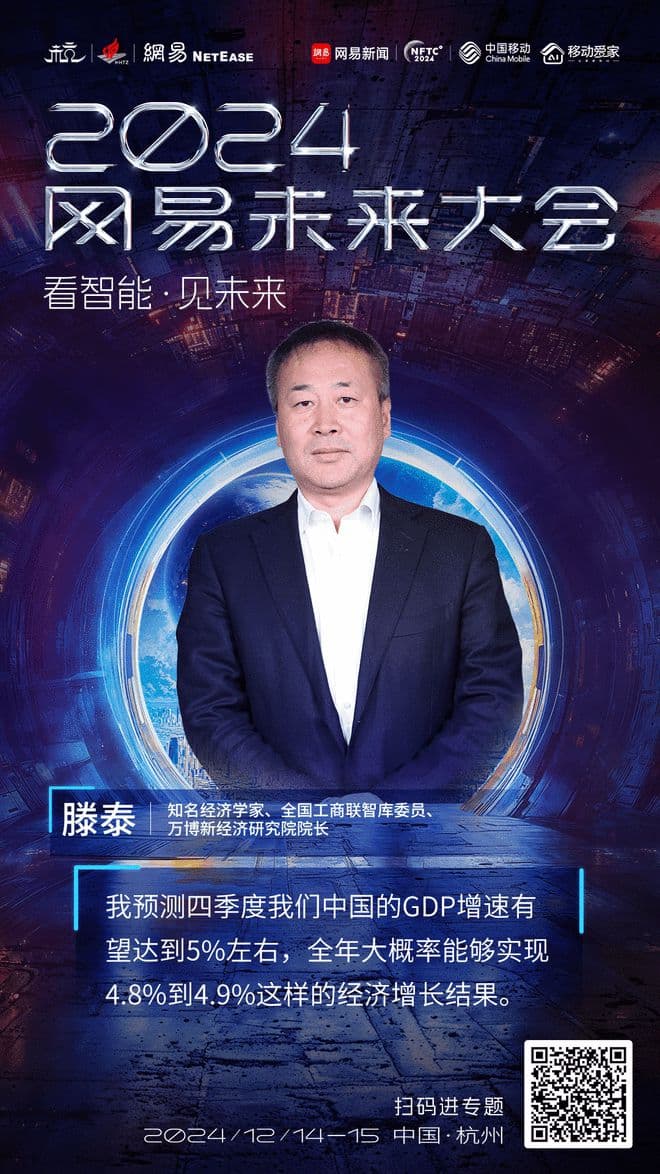 现场,滕泰表示,静态地看我们的整体经济还处于典型的通货紧缩阶段,部分行业比如说房地产、光伏等周期性行业还处于周期性衰退阶段。在九月份以来,我们有力的积极财政政策已经适时转向宽松的货币政策的支持下,整个楼市有所回稳,股市持续上涨。那么再考虑到12月份我们的出口,尤其是对美国的出口可能超预期的增长,我预测四季度我们中国的GDP增速有望达到5%左右,全年大概率能够实现4.8%到4.9%这样的经济增长结果。
