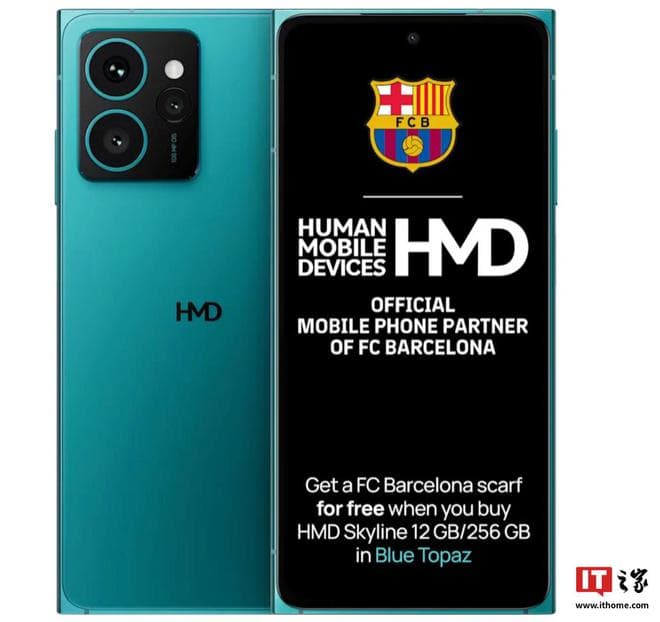 IT之家 12 月 16 日消息,HMD Global现已为其手机推出一款巴塞罗那足球俱乐部定制版,该版本手机使用12GB RAM和256GB存储空间配置,采用“Blue Topaz(蓝玉)”配色外观,赠送一条巴塞罗那围巾,其他方面和标准版Skyline手机没有区别,定价 399 欧元(IT之家备注:当前约 3050 元人民币)。