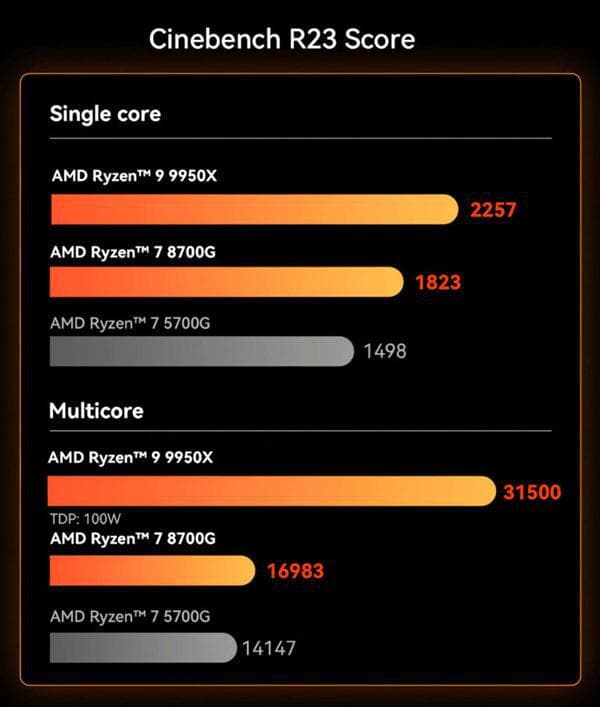 不过铭凡仍然声称,搭载9950X的版本相比8700G处理器版本在CPU性能上几乎翻倍。