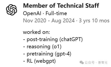 Suchir Balaji曾参与了ChatGPT后训练、GPT-4预训练,以及o1推理的研发工作。