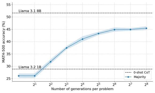 以下是多数投票应用于 Llama 3.2 1B Instruct 时的表现: