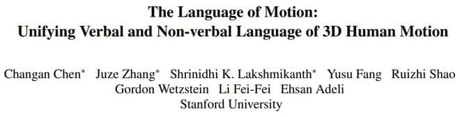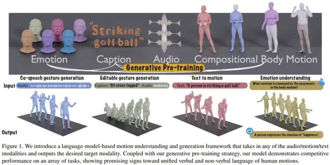 近日,斯坦福大学李飞飞、Gordon Wetzstein 和 Ehsan Adeli 领导的一个团队也在这方面做出了贡献,探索了语音 - 文本 - 动作生成任务。并且他们还提出了一个全新的多模态语言模型,可以实现富有表现力的动作生成和理解。