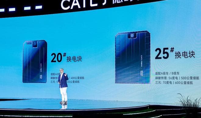 曾毓群在现场也提到,“我们会继续推进换电标准化,最核心的是电池尺寸的标准化。”比照加油站92号和95号汽油,宁德时代也推出两种标准化巧克力换电块,并命名为20号和25号换电块。