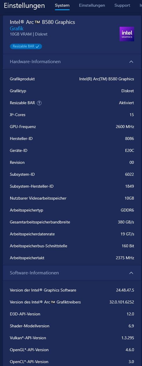 英特尔尚未针对锐炫 B570 发布官方驱动,Cross-Flow 因此选择在该显卡上安装已支持锐炫 B580 的 6252 驱动程序: