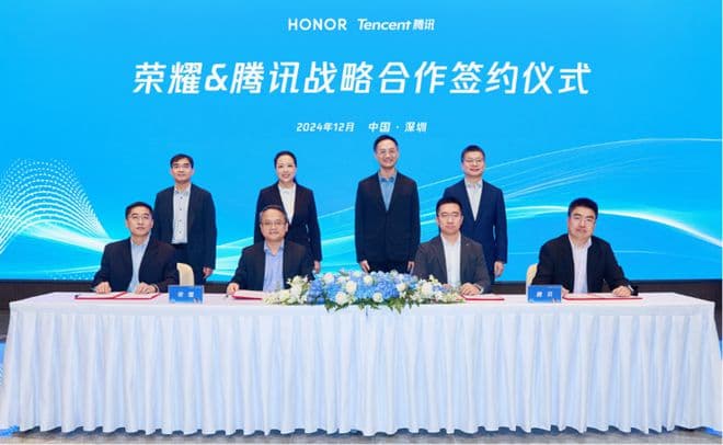 近日,荣耀与腾讯在深圳正式签署战略合作协议。双方将在云计算、商业生态及技术生态等多个领域深化合作,将荣耀在终端、AI、生态建设等方面的优势与腾讯在云计算、内容平台、游戏等方面的优势互补,实现共赢,共同提升用户体验。