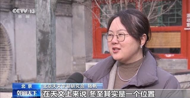 北京天文馆副研究员 杨帆:在天文上来说,冬至其实是一个位置,是太阳运行到黄经270°的位置的时候。