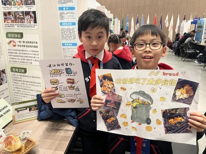 “临期的面包会被怎么处理?到底还能不能吃?如果能吃,还有营养价值吗?采取怎样的措施可以减少面包店和连锁超市的浪费……”上海民办尚德实验学校三(2)班的王子谦和沈一辰无意发现连锁面包房会把临期面包直接报损,感叹“太浪费啦”之余,两个人通过调研、查阅资料和文件、经过实地走访、问卷调查、送检与分析以及专家访谈,成就了长达半学期的一次课题研究《拯救临期食品,消费不浪费》。在这份研究中,两个小朋友提出了设置临期面包专柜,并根据不同生产日期给面包贴上不同颜色的标签提醒消费者。