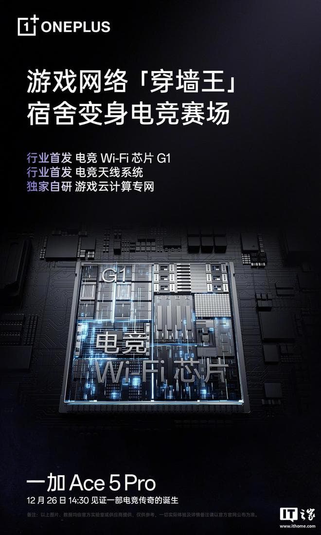 一加 Ace 5 Pro 手机预热:行业首发“电竞 Wi-Fi 芯片 G1”