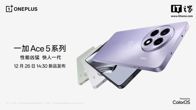 IT之家 12 月 23 日消息,一加 Ace 5 系列手机将于本周(12 月 26 日)发布。一加官方今日宣布,一加 Ace 5 Pro 手机行业首发“电竞 Wi-Fi 芯片 G1”。