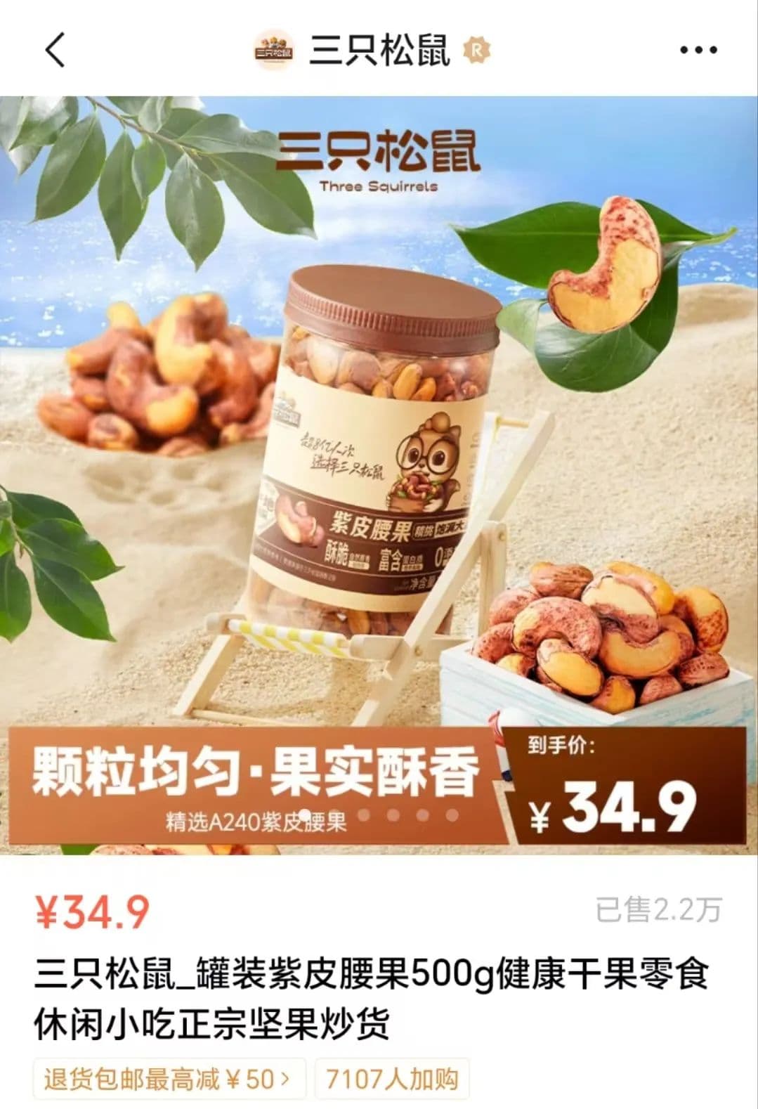 据了解,当前在三只松鼠微信小店热卖的一款爆品,是主打高性价比、天然无加工的“紫皮腰果”。这一产品热卖背后,也体现出微信电商用户大盘对高品质、健康生活方式的追求。