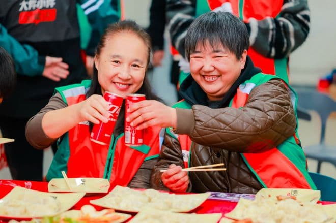 冬至这天,滴滴送货沈阳司机驿站组织司机师傅们包饺子过节。“大家聚在一起热热闹闹很有家的感觉。”顾师傅吃完水饺,泡了杯姜汤冲剂,拿了两片暖宝宝继续出车。“沈阳现在白天都零下10度了,这些驱寒物资非常实用。”
