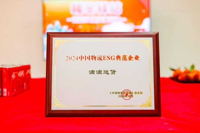 (滴滴送货获得“2024中国物流ESG典范企业”奖)