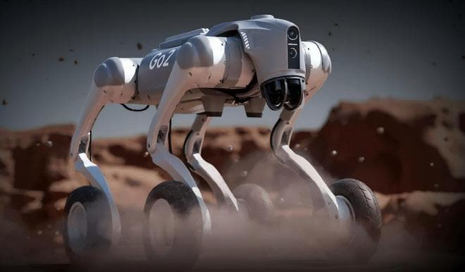 宇树科技表示,该机器狗已经发布量产一年,其工业轮足解锁了更多技能。