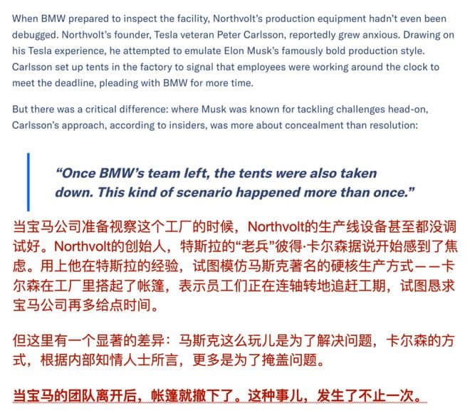 欧洲方面,最震撼的案例就是草台班子到了震惊业内一百年地步的瑞典Northvolt电池项目。
