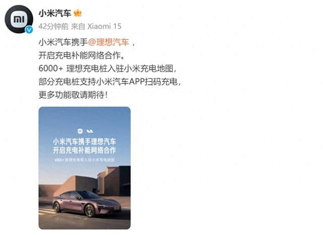 此次合作中,小米汽车不仅与理想汽车达成协议,将6000+理想充电桩纳入小米充电地图,部分充电桩更支持通过小米汽车App扫码充电,为用户带来更加便捷的充电体验。此外,小米汽车还与蔚来汽车和小鹏汽车分别达成合作,14000+蔚来充电桩和9000+小鹏充电桩也将入驻小米充电地图,进一步扩大了小米汽车的充电网络覆盖范围。(青云)