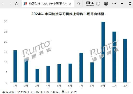 洛图科技:2024 年中国便携学习机电商销量将达 182 万台