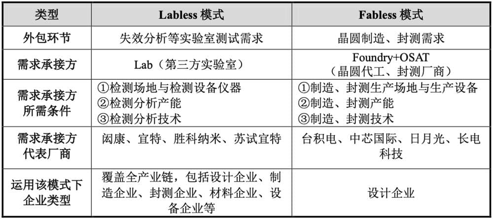 Labless是Lab(实验室)与Less(无,没有)的组合,是“无自建实验室”的运作模式,在现阶段半导体产业发展中也涵盖了“轻实验室”模式,即未购置大量检测分析实验设备而主要委托第三方进行检测,与厂内自建实验室In-House Lab模式相对。