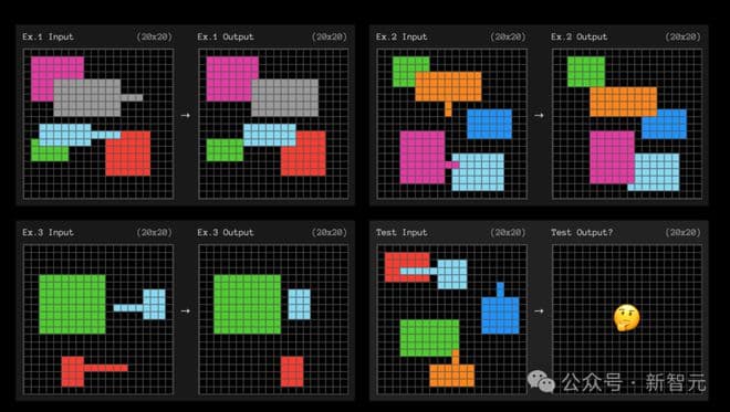 o3在ARC-AGI基准测试中必须解决的视觉逻辑问题示例