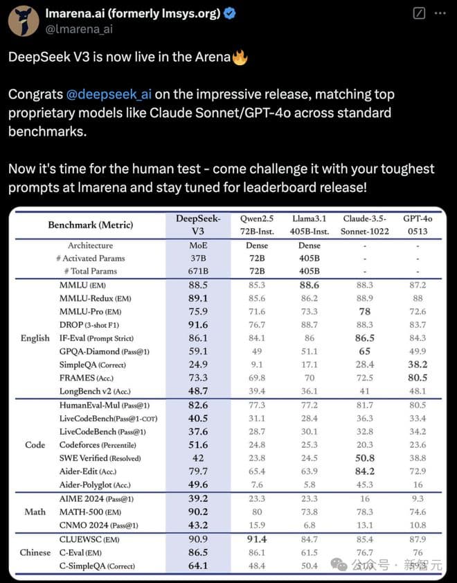 【新智元导读】600万美金训出击败GPT-4o大模型,竟被中国团队实现了!今天,DeepSeek-V3在全网掀起巨大风暴,仅凭671B参数在数学代码性能上,堪比国外大模型Claude 3.5 Sonnet。