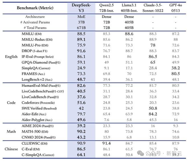 DeepSeek-V3不俗表现,是在上一代V2进一步升级和迭代。