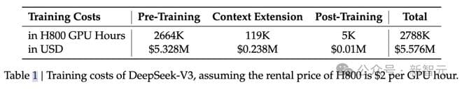 DeepSeek-V3训练成本如下表1所示,这是背后团队通过优化算法、框架、硬件协同设计最终实现的。