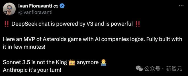另有开发者通过DeepSeek-V3创建了一个用AI公司logo制作的小行星游戏,分分钟就完成了。