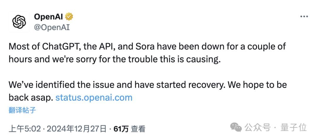 甚至就在今天凌晨OpenAI的服务还因为“上游提供商”的问题出现宕机,微软作为OpenAI唯一的云服务提供商,这个“上游”说的是谁可想而知。