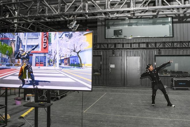 这是6月27日在重庆永川科技片场拍摄的实时动作捕捉技术演示现场。当日,首届中国·重庆科技电影周影视科创展览在重庆永川正式开展。 新华社记者 王全超 摄
